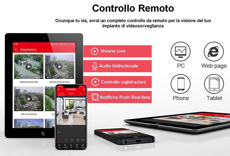 Se impostata, è possibile poter vedere da remoto anche in tempo reale le immagini captate dalle telecamere, tuttavia tale funzione necessita di una connessione ad Internet.